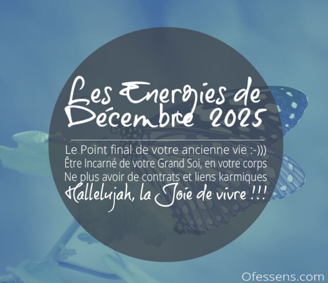 Décembre 2025, Game over de votre vie d’avant, le Point final, hallelujah… Ecouter Les Podcasts des Energies de Décembre 2025, c’est vous permettre de vivre un réel game changer, en 2026… !!! 2025, est une année 9, elle est un exutoire, elle a été compliquée, vous avez été invité, à vider votre sac… et elle peut être, l’aboutissement de toute une vie de labeur, Être incarné de votre Grand Soi, en votre corps et en votre Vie… Le bout du Tunnel karmique, enfin :-), et en 2026, année 1, Être en la Joie absolue, de votre Vie sur Terre!!!